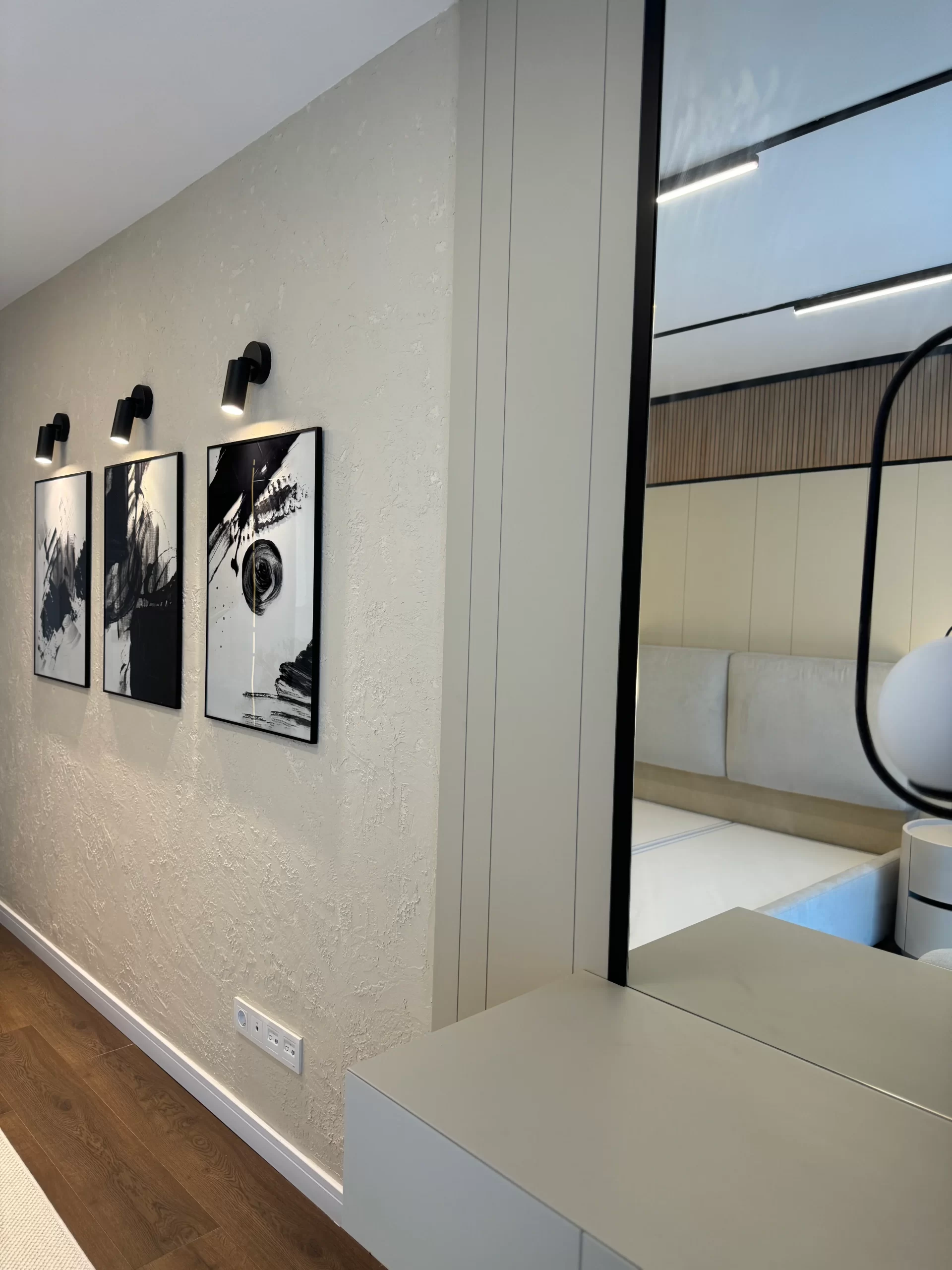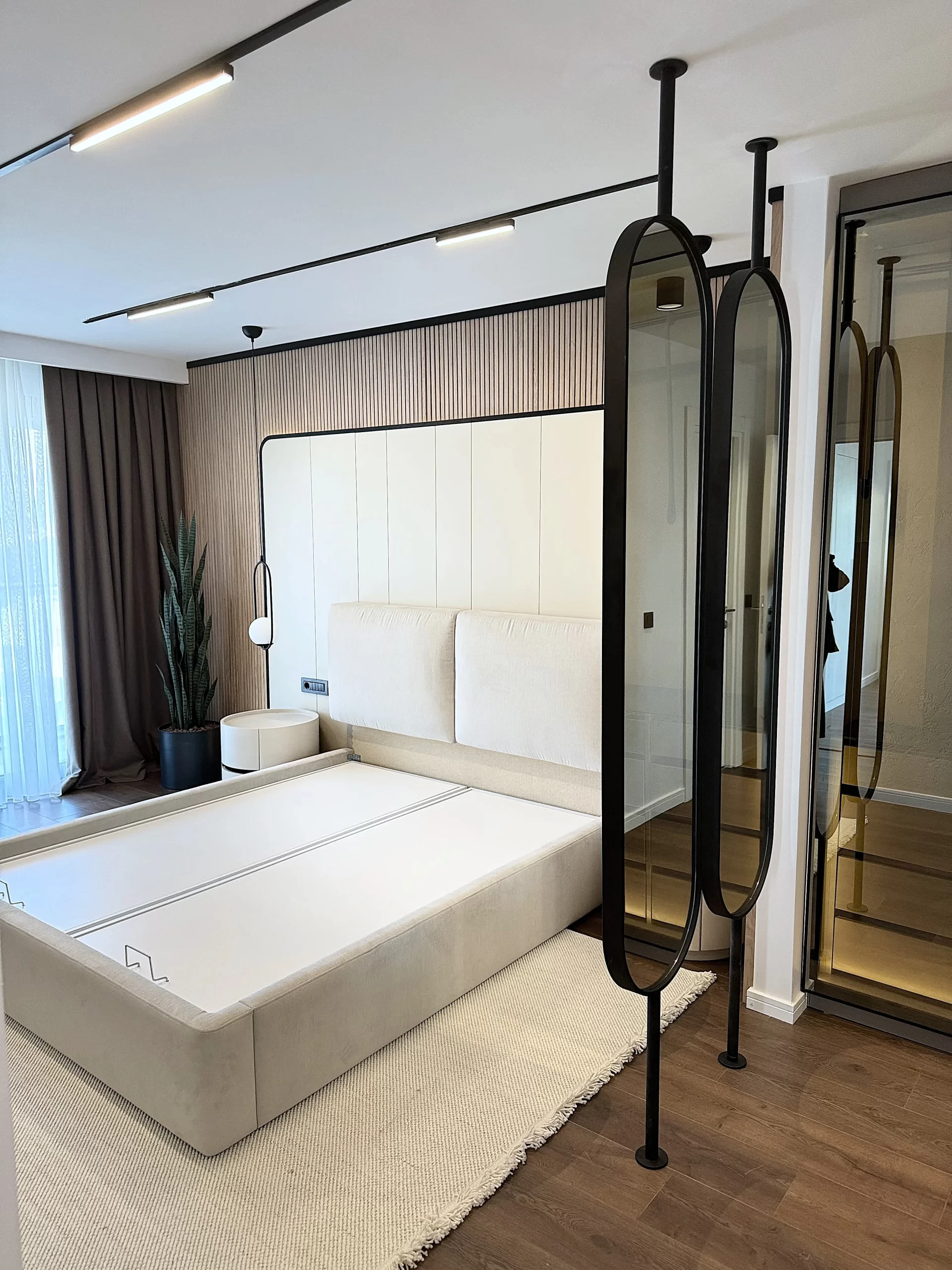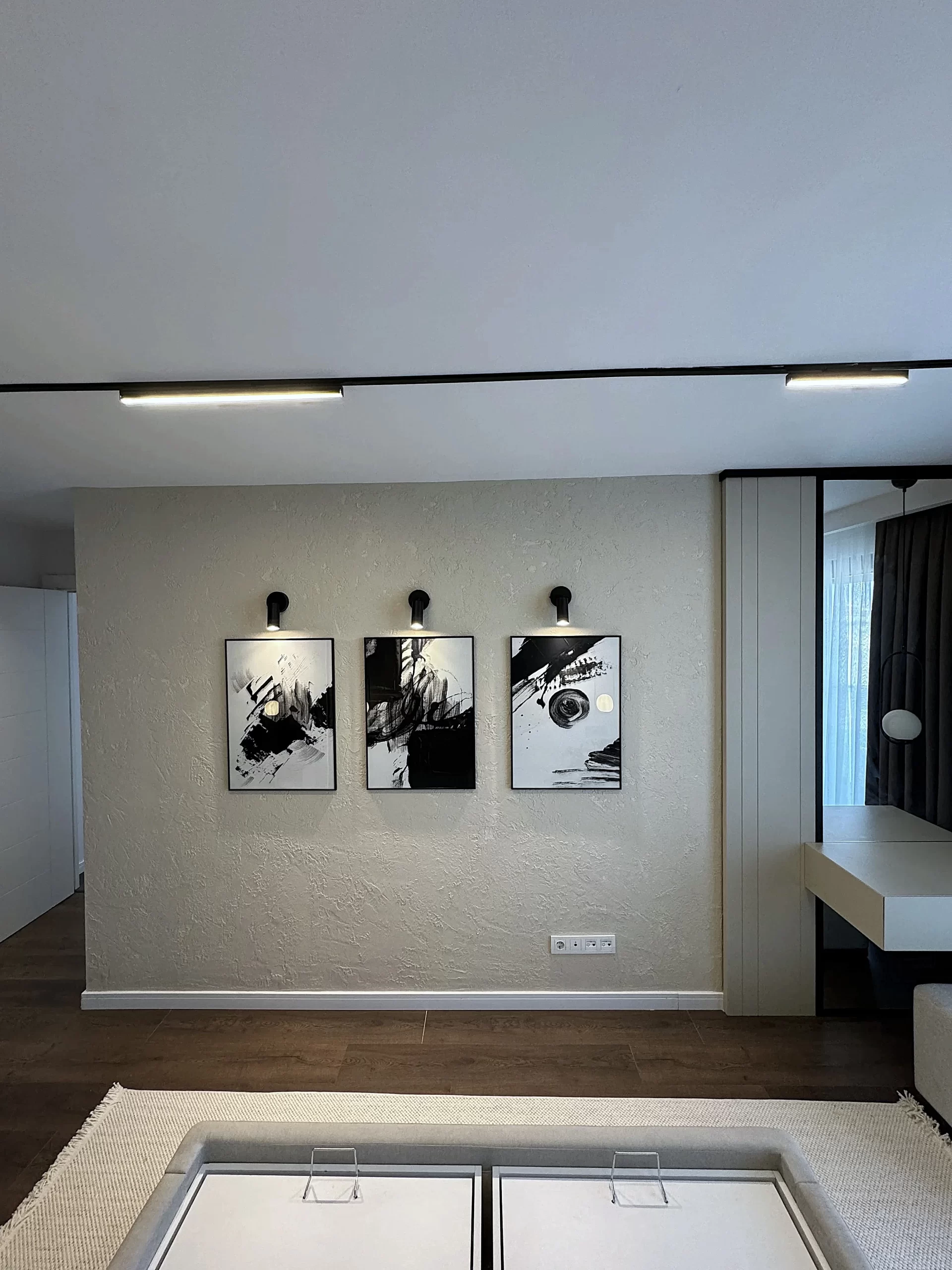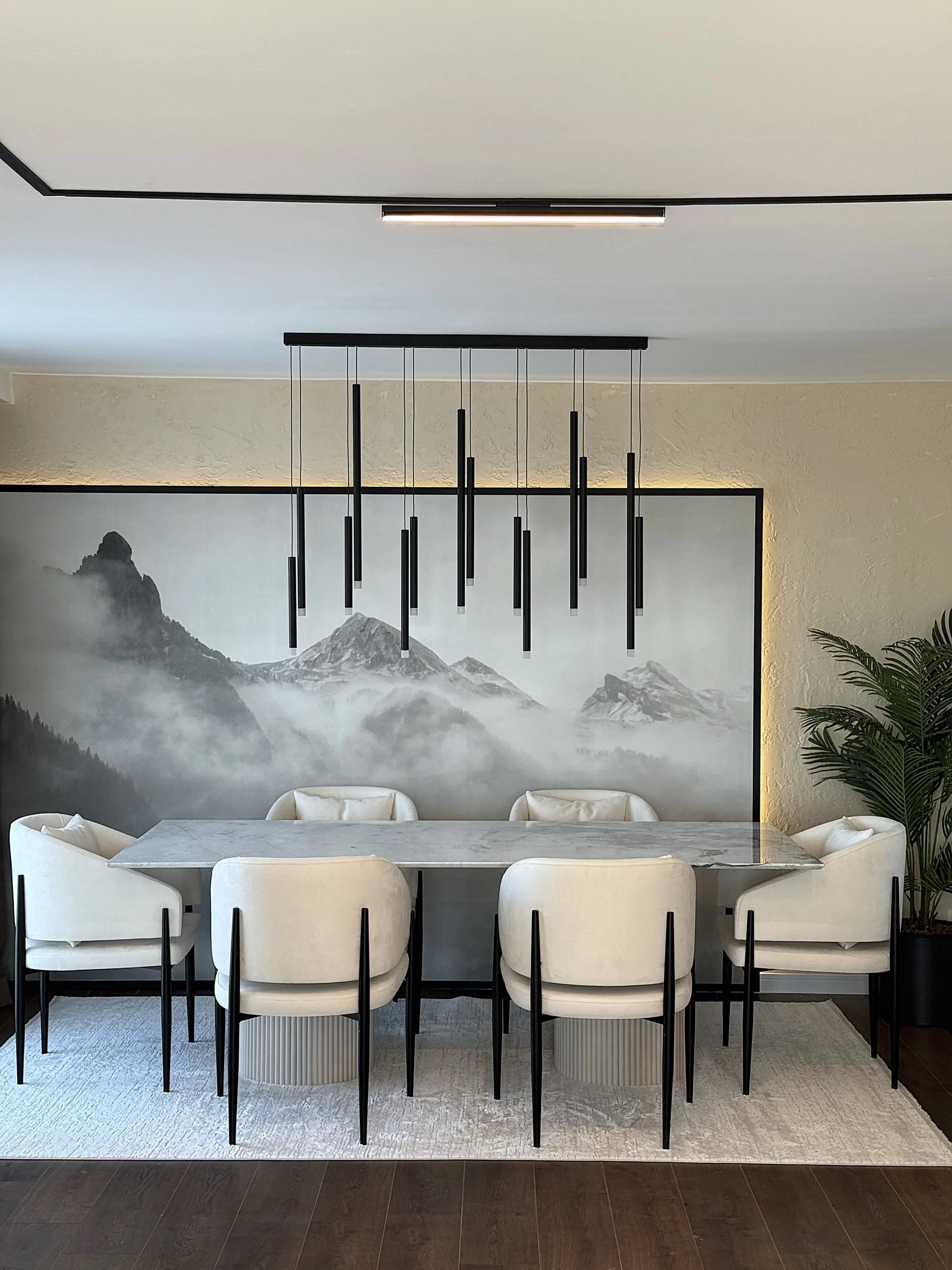 Açık renk tonlarını minimalist mimari tasarımımızla uyumlu bir şekilde birleştirirken, gizli aydınlatmaları karanlık alanlarda tercih ettik. Bu yaklaşım, ev sahibimizin ihtiyacına uygun olarak, ışığın doğrudan ve şiddetli bir şekilde gözükmemesini sağlamak amacını taşıyor. Tasarım sürecinde, her bir ayrıntıyı titizlikle ele alarak, mekanın genel estetiği ve kullanım konforunu artırmayı hedefledik. Işıklandırma çözümlerimizi, mekanın ambiyansını ve atmosferini en iyi şekilde yansıtacak şekilde konumlandırarak, hem fonksiyonel hem de estetik bir deneyim sunmayı başardık. Bu yöntemle, mekanın her köşesine zarif bir aydınlık kazandırırken, aynı zamanda gözü rahatsız etmeyen ve huzur veren bir ışık düzeni oluşturduk.